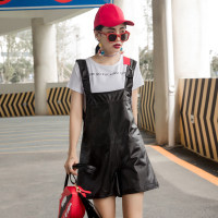 秋冬新款真皮皮裤女时尚百搭皮吊带短裤修身显瘦绵羊皮背带裤