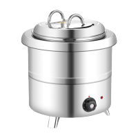 暖汤煲商用自助餐厅保温炉电加热汤炉保温桶粥桶保温桶 13L不锈钢色 直型暖汤煲 304内胆 配3把长勺