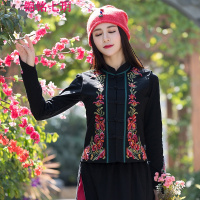 锦铭七玥民族风女装棉麻绣花马甲2018春款立领盘扣修身无袖薄外套
