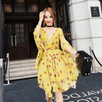 YIBUSHENG韩国东大门紧身舒适显身材~女人味显腰身荷叶边短袖连衣裙短裙子