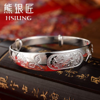 熊银匠纯银手镯女龙凤福字999足银镯子可调节 送妈妈时尚银饰品