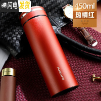 三维工匠保温杯男女便携大容量不锈钢水杯子定制刻字商务男水杯泡茶杯 钢条红450