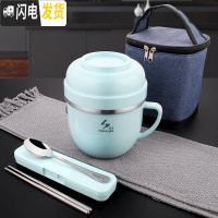 三维工匠304不锈钢饭盒成人上班族带饭便当盒食堂打饭简约快餐杯带盖饭缸 蓝色餐杯1个+蓝色袋子+餐具三件套