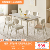 全友家居 可伸缩功能餐桌悬浮岩板台面实木框架餐桌餐椅组合套装