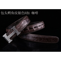霸气泰国老鳄鱼皮腰带男士鳄鱼皮皮带真皮百搭男款Z扣裤带包头鳄鱼纹银色H扣咖啡
