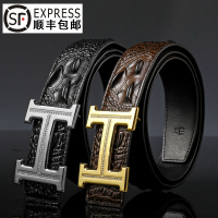 男士高光美洲鳄鱼皮纹牛皮皮带男款韩版休闲裤腰带秋冬新品