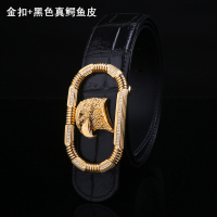 霸气虎头男士鳄鱼皮皮带生肖老虎扣镶钻男款泰国鳄鱼骨真皮裤腰带