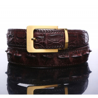 泰国进口鳄鱼大骨鳄鱼皮 牛皮手工编织边H形钢拉丝皮带扣