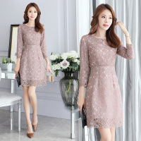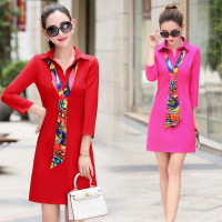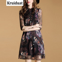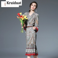 Kruidvat2017早春新款优雅气质七分袖过膝印花宽松鱼尾裙女