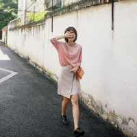 韩版chic百搭修身显瘦纯色露肩上衣气质一字领七分袖打底T恤潮女
