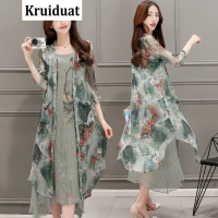 Kruidvat圆领宽松腰套头A字裙七分袖中长款印花2017年夏季套装Hz014绿色