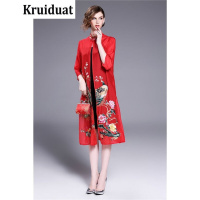 Kruidvat新款民族风孔雀刺绣夏装长款七分袖立领女装大衣B058