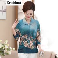 Kruidvat中老年女装夏装新款七分袖开衫中年女薄修身印花衫妈妈装M6