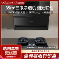 万和(Vanward)[小双翼V9L Plus·纳米抗污面板]顶侧三吸抽排油烟机29风量家用大吸力烟灶联动超薄0嵌配曜石