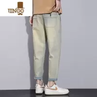 YANXU水洗黄泥色牛仔裤男士夏季弹力宽松直筒九分裤男生痞帅长裤子