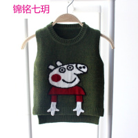 锦铭七玥2017秋冬新款儿童毛衣 男女童佩奇小猪毛线背心 韩版卡通套头马甲