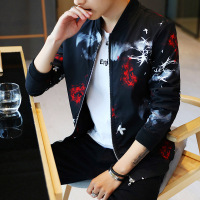 Mr·靓2017男士秋季上衣外衣青年新款时尚长袖夹克韩版个性花外套