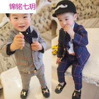 锦铭七玥韩版中小童格子童西装 宝宝套装西装套装男厂家批发儿童套装夏