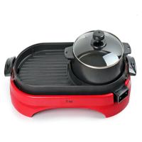 烤涮锅一体锅韩式多功能炒锅家用电烤锅烤肉火锅电煎锅烧烤架 红色