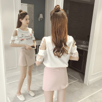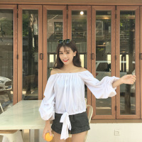 薇侣2017新品夏季新款韩版女装chic风净色一字肩系带灯笼袖T恤
