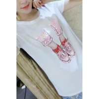 薇侣2017新品新款韩版宽松短袖T恤女字母印花学生半袖蕾丝花边上衣潮