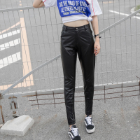 冬新款真皮皮裤女中腰九分裤休闲显瘦铅笔裤绵羊皮萝卜裤潮流