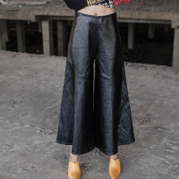 秋冬新款真皮皮裤女中腰九分裤韩版时尚大摆阔腿裤绵羊皮裤潮
