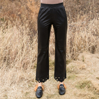 冬新款真皮皮裤女中腰九分裤时尚脚口无眼阔腿裤气质绵羊皮裤