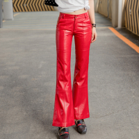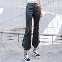 秋冬新款真皮皮裤女中腰九分裤休闲百搭绑带开叉绵羊皮喇叭裤