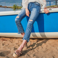 秋装新款微喇牛仔裤女中腰破洞韩版休闲显瘦流苏九分裤潮CYLLSD