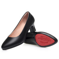 软皮工作鞋女中跟黑色职业面试上班鞋正装跟通勤防滑皮鞋女单鞋子