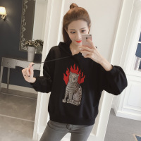 2017秋冬新款女装长袖加绒加厚卫衣女宽松韩版连帽套头刺绣外套潮