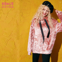 妖精的口袋-热情颠覆春秋装2017新款丝绒吊带蕾丝假两件卫衣女