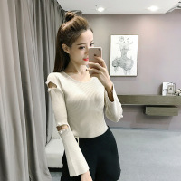 珂依舍2017秋装新款2017秋冬新款修身打底显瘦漏肩针织毛衣外穿女时尚韩版潮