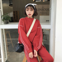珂依舍2017秋装新款原宿字母宽松长袖休闲卫衣女加绒高腰运动长裤两件套装