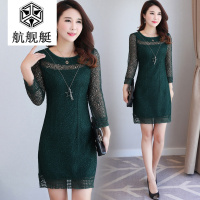 2017秋装新款韩版长袖蕾丝镂空拼接气质修身中长款连衣裙女