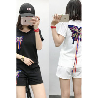2017夏季新款刺绣蝴蝶休闲时尚运动套装女韩版显瘦短袖短裤女