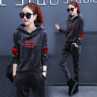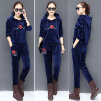 休闲运动服套装女秋冬2017新款时尚金丝绒韩版卫衣加绒加厚两件套