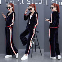 中老年女士休闲两件套套装妈妈装拼接条纹款衣服中年休闲运动服女