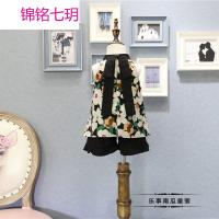 锦铭七玥米豆儿童装 夏季女童新款碎花飘带无袖T恤+短裤 套装