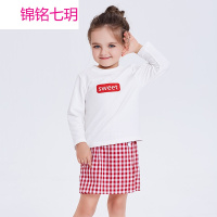 锦铭七玥2018春季新款品牌童装欧美风T恤+格子裙裤女童套装批发