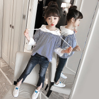 锦铭七玥童装女童套装夏款2017新款韩版棉短袖T恤流苏牛仔裤大童两件套装