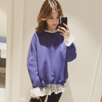 普美思 卫衣女宽松2017秋冬新款韩版假两件拼接蕾丝喇叭袖卫衣女学生长袖上衣外套潮