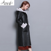 纪尼诗(Jinishi) 2018女装冬季新款羊毛毛一体大衣女 韩版长款连帽草外套
