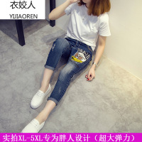 衣姣人 2018女装新款大码印花九分牛仔裤胖MM修身显瘦弹力牛仔裤