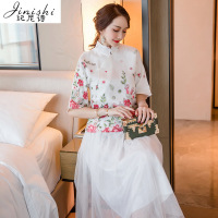 纪尼诗(Jinishi) 2018女装中国风春夏两件套定位花茶服日常汉服上衣半身裙纱