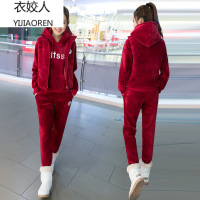 衣姣人(YIJIAOREN) 2018女装新款女装冬时尚双面绒加厚连帽三件套运动休闲套装