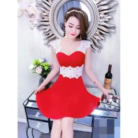 YIBUSHENG法式复古v领无袖挂脖连衣裙女装季收腰系带度假风短裙红色裙子