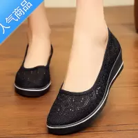 SUNTEK夏季女式网鞋白色透气护士鞋坡跟上班工作布鞋美容鞋黑色高跟女鞋