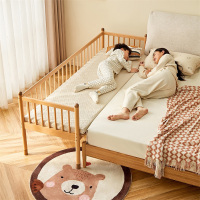 美帮汇全榉木儿童床拼接床带护栏床加宽床小孩床定制床实木床拼床